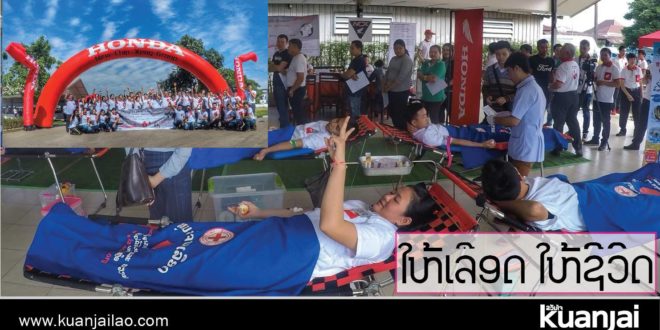 “ຂໍຂອບໃຈ ຜູ້ຮ່ວມບໍລິຈາກເລືອດທຸກທ່ານ ບໍລິສັດ ນິວຈິບເຊັງ ຈຳກັດ ແລະ ຮ້ານຕົວແທນ ຈຳໜ່າຍ ລົດຈັກຮອນດ້າ 3s ທົ່ວປະເທດ ຮ່ວມກັບ ອົງການກະແດງລາວ ຍອດລວມທັງໝົດ 609 ຖົງ”